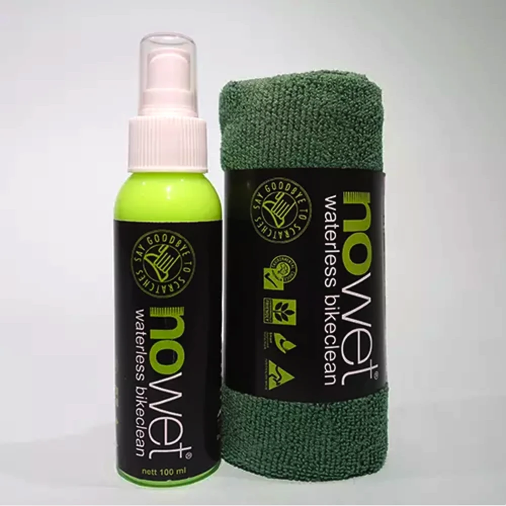 Tersedia dalam 1 Paket yang terdiri dari 1 Botol 100ml NoWet Waterless Bikeclean + 1 pc Microfibre Cleaning Towel 40x40cm