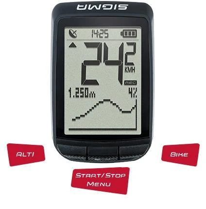 - 3 Button Concept. Operation via three buttons is intuitive and user-friendly. There is a button each for the Bike and Altitude functions as well as a third button in the middle as an On/Off, Start/Stop or Menu button.